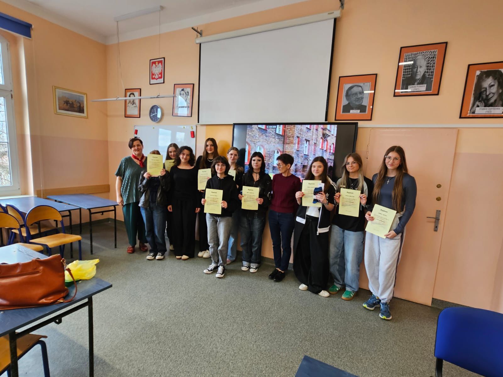Za nami X edycja szkolnego konkursu „Jo je ze Ślonska”. Jak co roku atmosfera była swojska, a uczestnicy chętni do snucia swobodnych opowieści – oczywiście w gwarze. W tym roku mieli za zadanie wytłumaczyć popularne przysłowia i wcielić się w rolę literackich kochanków, tłumacząc miłosne monologi Julii, Romea czy Papkina. Cieszymy się, że są wśród nas jeszcze młodzi ludzie, dla których język poprzednich pokoleń jest żywy. Organizatorki konkursu J. Soremba i J. Paleta – oczywiście znające gwarę – miały okazję wręczyć uczestnikom dyplom – tytuł „Strażnika gwary śląskiej” oraz „zoki” z śląskim akcentem.