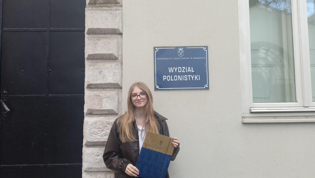 W piątek 17 kwietnia odbył się finałowy etap ogólnopolskiego konkursu „Świat ukryty w literaturze. Świat ukryty w języku. Świat ukryty w tekstach kultury” organizowanego przez Wydział Polonistyki Uniwersytetu Jagiellońskiego. Uczennica klasy 2C Lena Brzostowska, przygotowana przez nauczycielkę j. polskiego Karolinę Skowrońską, zdobyła tytuł laureatki konkursu.